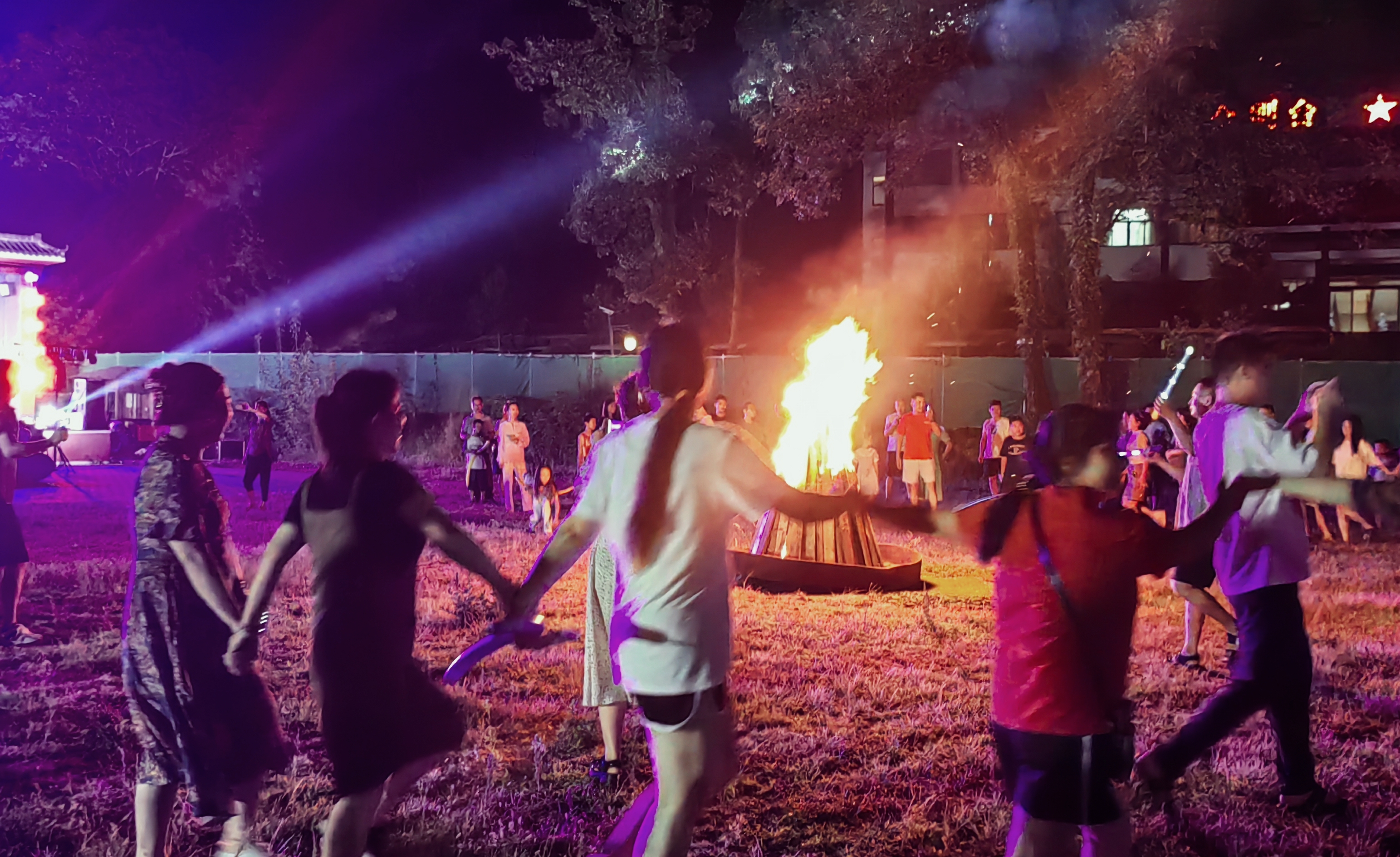 傍晚,一群人手拉著手圍著篝火轉(zhuǎn),大家跟著音樂(lè)跳舞,旋轉(zhuǎn)起來(lái)仿佛能把生活的煩惱憂愁通通甩開(kāi),篝火晚會(huì),是一場(chǎng)能讓人激情澎湃的活動(dòng)!